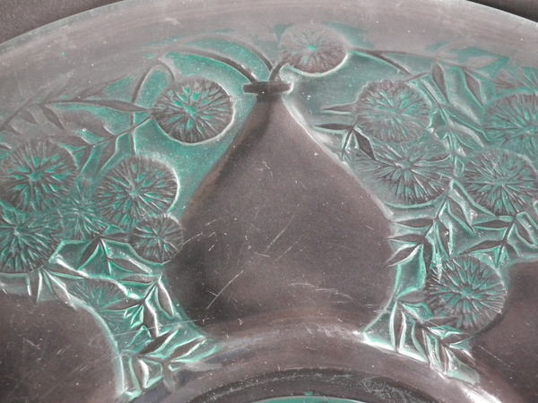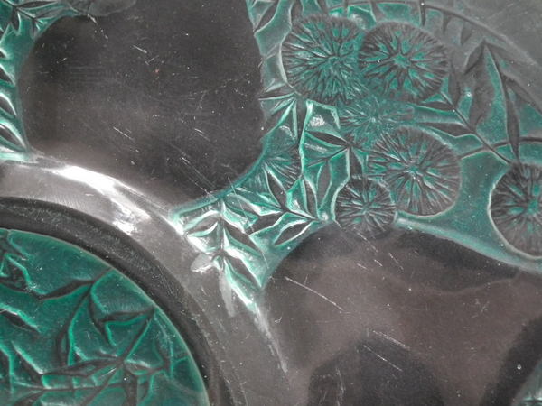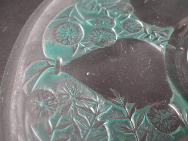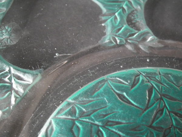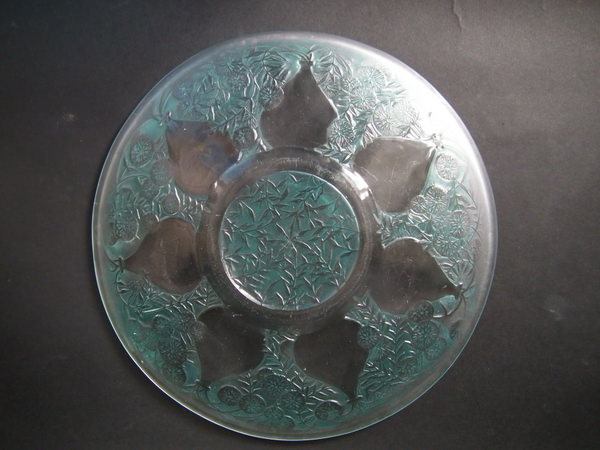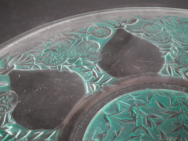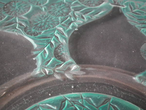 René Lalique Clear with green staining Glass 'Vases No. 2' plate