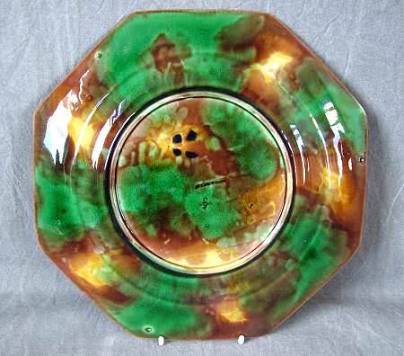 Victorian, date cipher for 1867. 9ins diameter. Wedgwood Majolica octagonal pictorial plate.