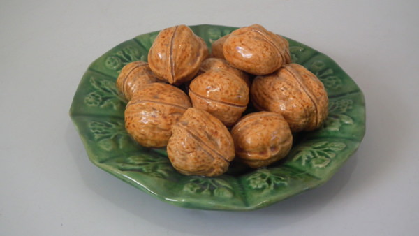 Jose Francisco de Sousa Portuguese Palissy Majolica plate which features walnuts.