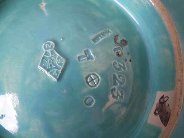 The piece bears maker's marks for the Minton pottery. Bears a pattern number, '1323'. English diamond registration mark for the date 23/03/1867.