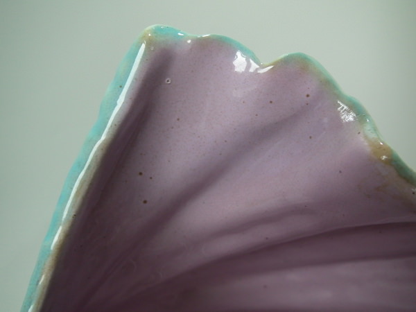 Good. KILN EFFECTS: flecks of stray coloured glaze to the exterior of shell;
