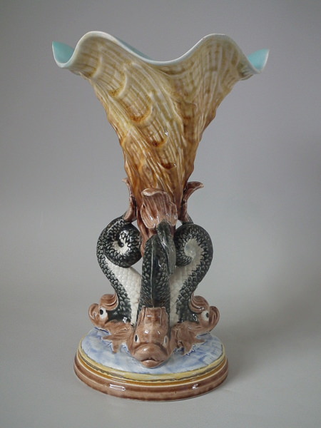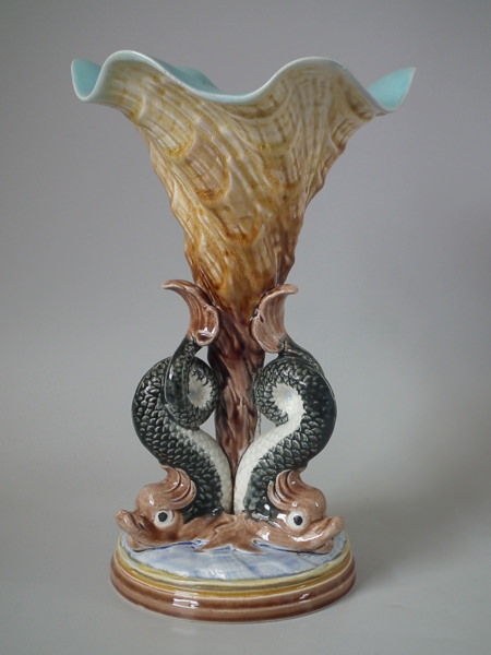 Gustafsberg Majolica dolphin & cornucopia vase