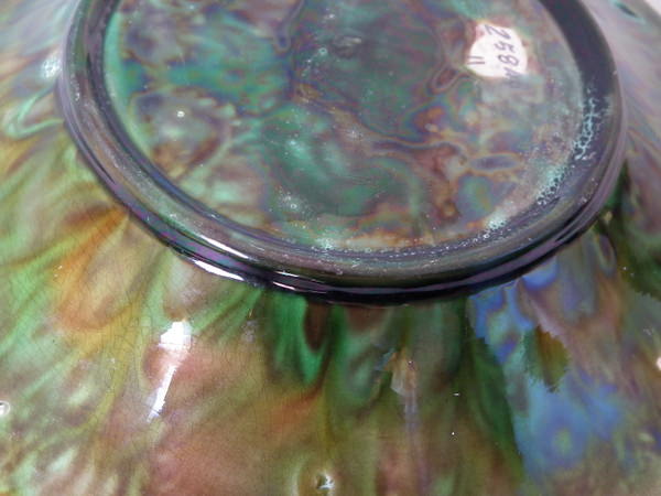 KILN EFFECTS: over glazed chip to stilt mark to under rim;