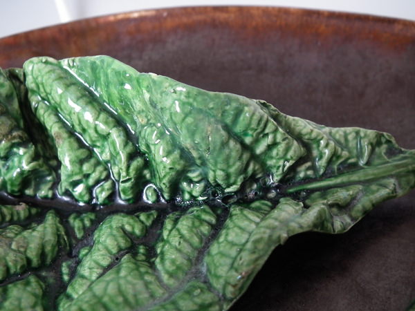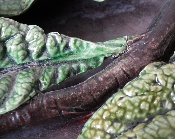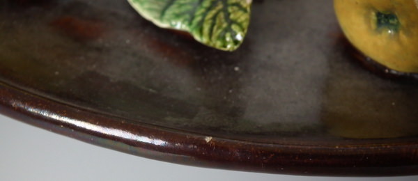 RESTORATION: Filled and retouched chips, one to plate rim and one to leaf edge.