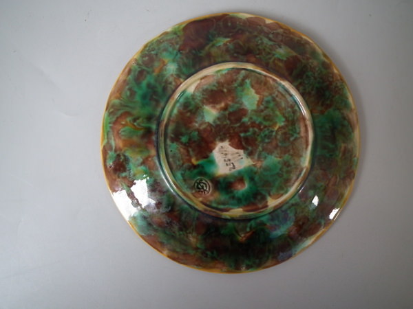 George Jones Majolica strawberry leaf on napkin plate
