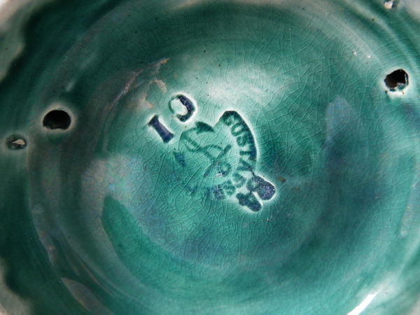 The piece bears maker's marks for the Gustafsberg pottery. Marks include a factory specific date cipher for the year 1884.