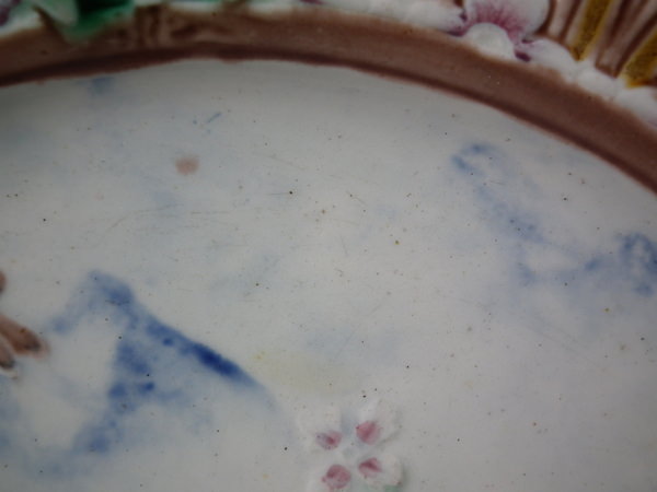 Wedgwood Majolica heron plate with pierced rim
