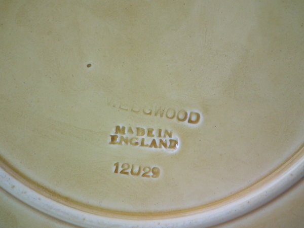The piece bears maker's marks for the Wedgwood pottery. Marks include a factory specific date cipher for the year 1929.
