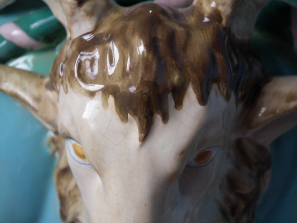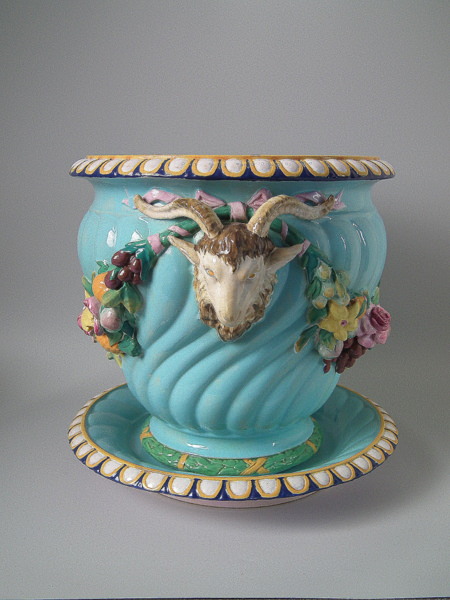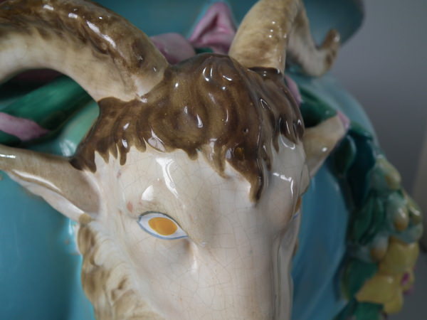 Minton Majolica Ram's head jardiniere&stand