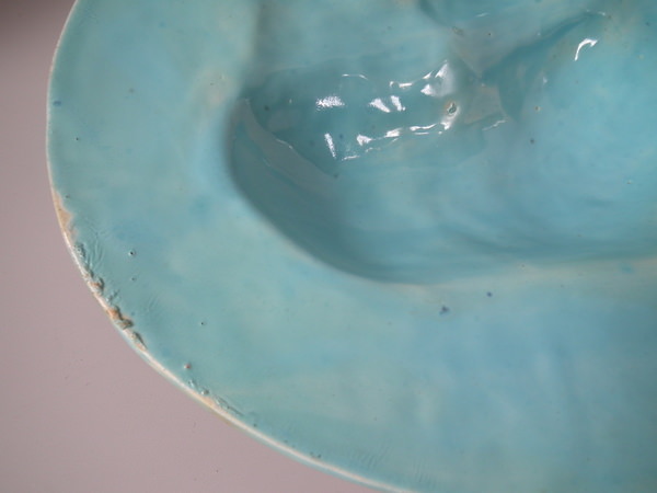 KILN EFFECTS: over glazed shrinkage line to the base of the handle;