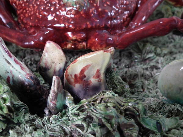 CONDITION: Good. Some small flakes to edges of some of the shells, to crab's back and to the green shredded clay.