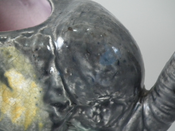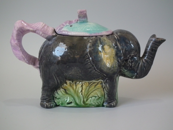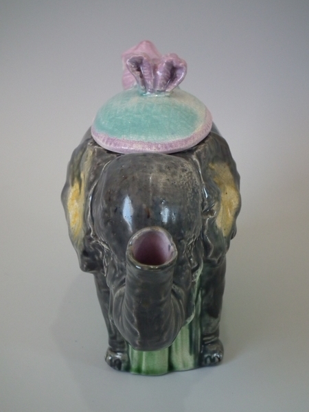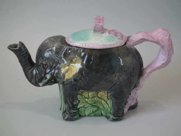 Majolica Elephant tea pot & cover