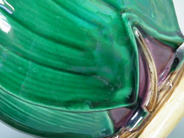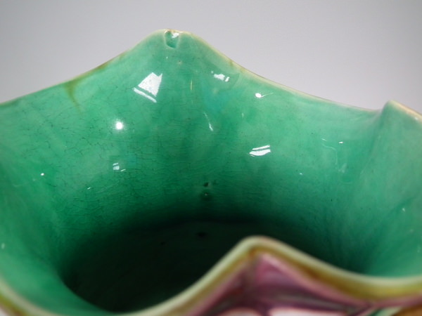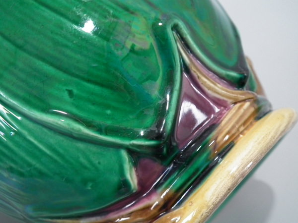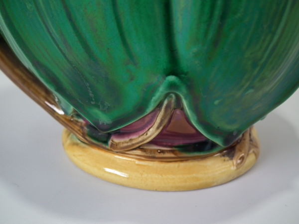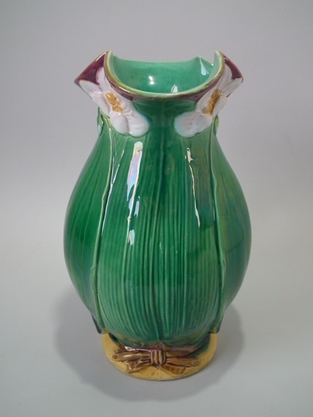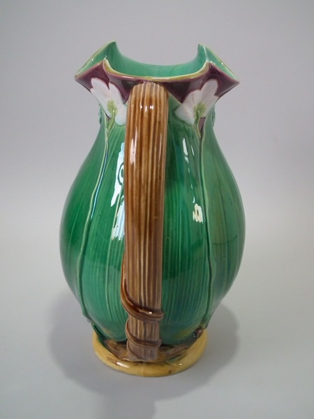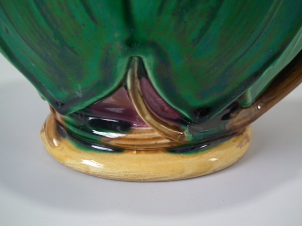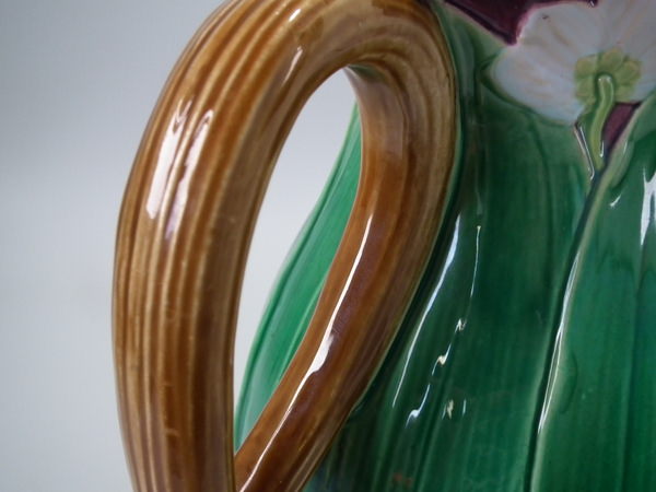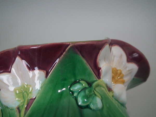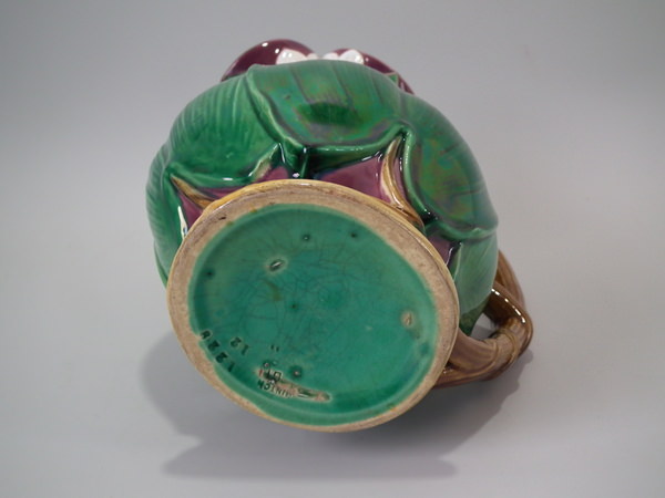 Victorian, circa 1868. 8.7ins high, 7.5ins wide, 5.1ins depth. Minton Majolica jug/pitcher which features lilies and lily pads.
