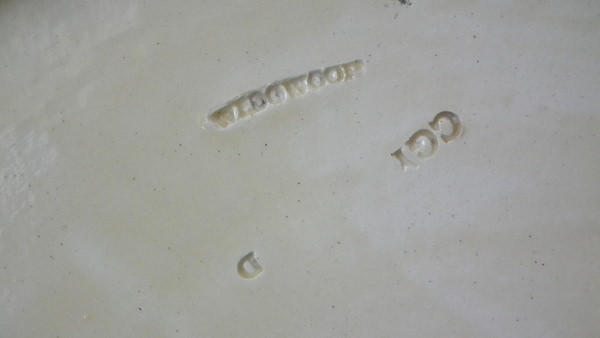 The piece bears maker's marks for the Wedgwood pottery. Bears a pattern number, 'D'. Marks include a factory specific date cipher for the year 1870.