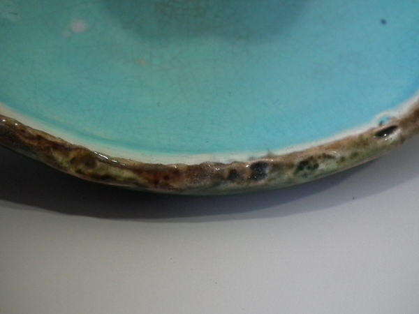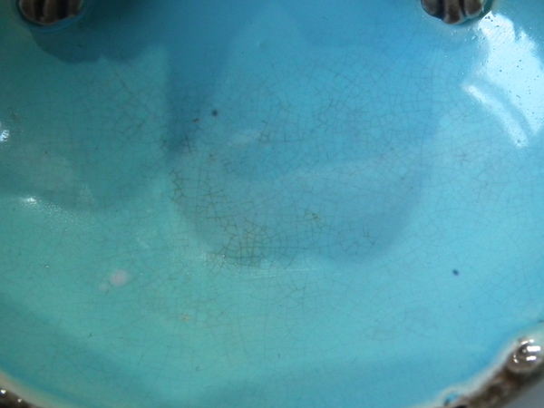KILN EFFECTS: stained craze lines to the interior of dish.