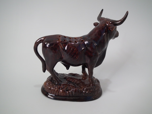 Portuguese Palissy Majolica toothpick holder which features a bull.