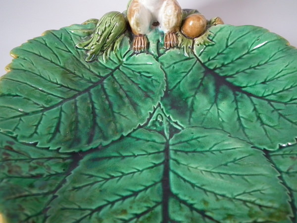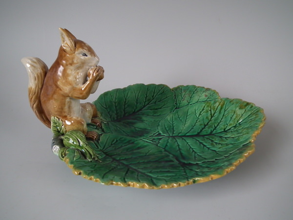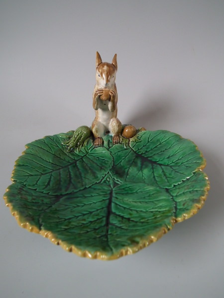 Minton Majolica squirrel nut dish