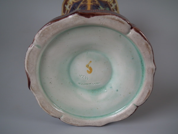 The piece bears maker's marks for the Wedgwood pottery. Marks include a factory specific date cipher for the year 1869.