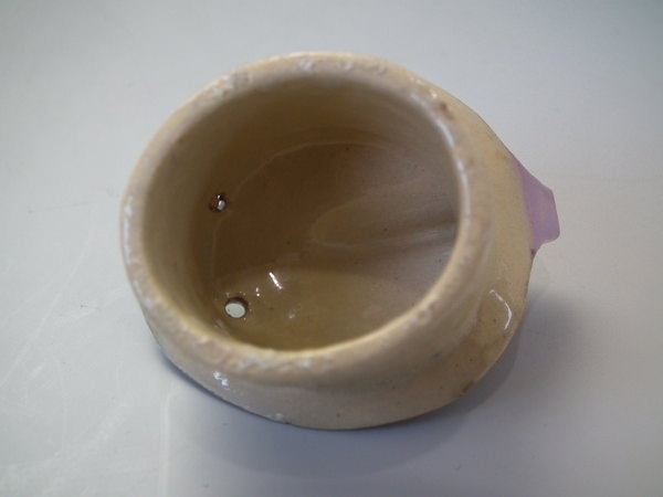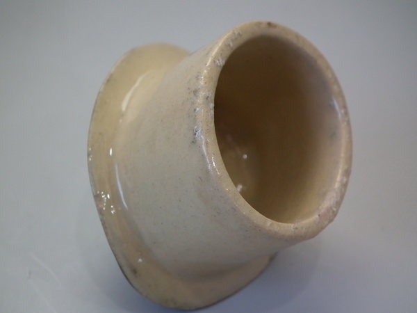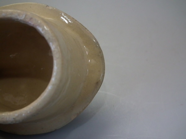 KILN EFFECTS: kiln soot caught in the glaze to the flange;