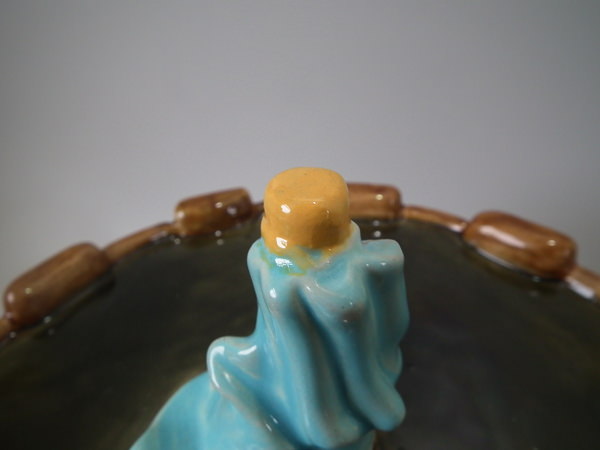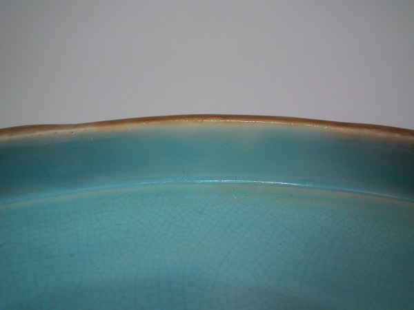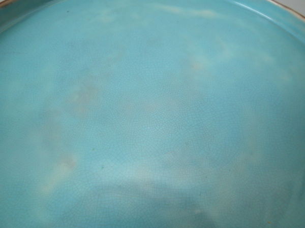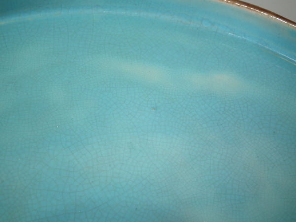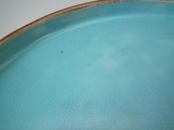 CONDITION: Cover: Generally good. KILN EFFECTS: a few specks of kiln detritus caught in the glaze to the exterior;