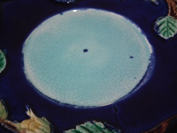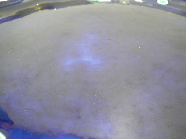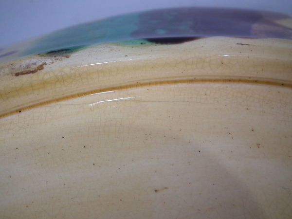 Kiln effects: Flecks of kiln detritus caught in the glaze to the interior.