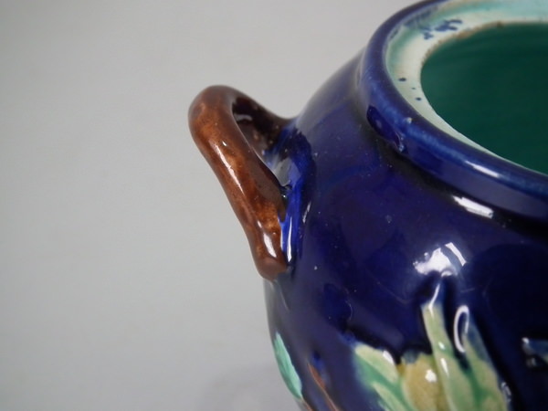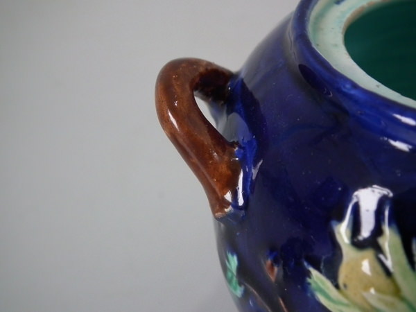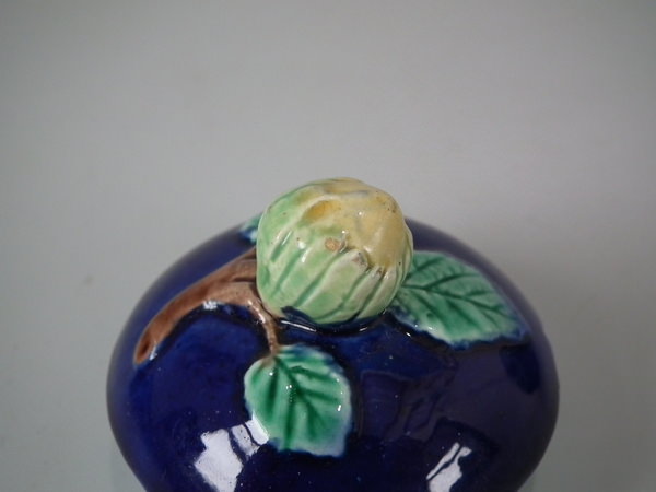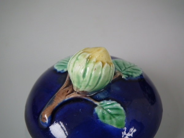 Restoration: Remodelled missing handles and section of rim to the lid.