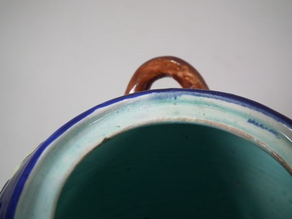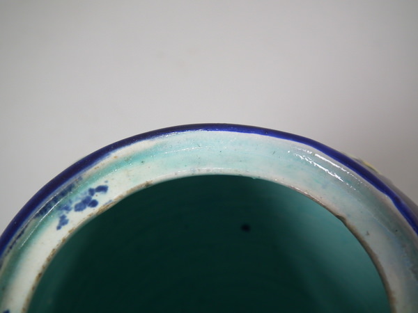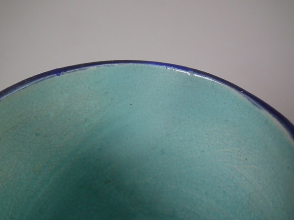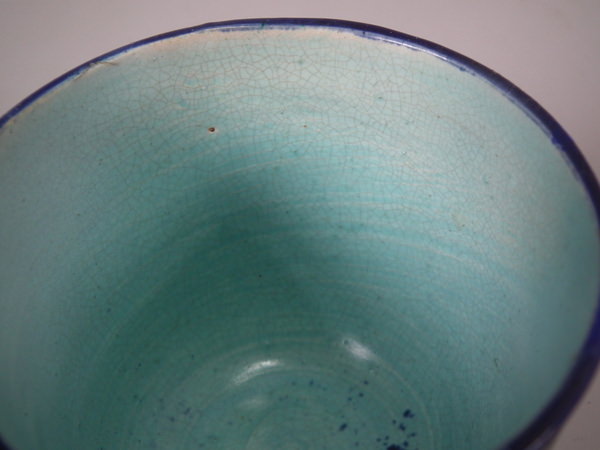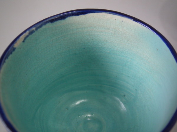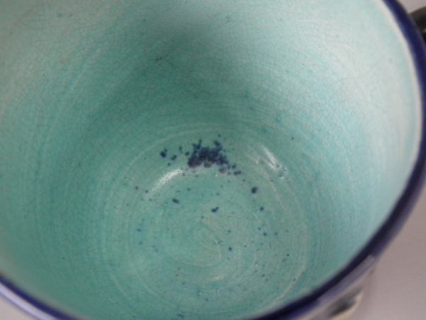 Kiln effects: Flecks of stray coloured glaze to the interior.