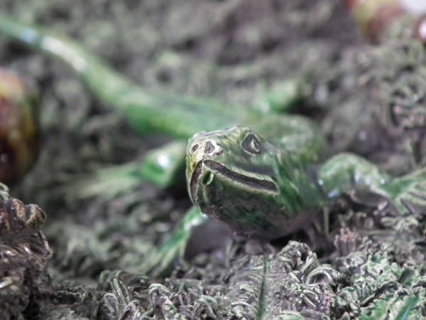 CONDITION: Good. Some small flakes to shredded clay, lizard's nose and snail's head.