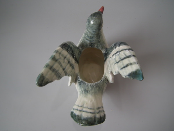 Victorian, circa 1900. 4.9ins high, 6.9ins wide, 4.7ins depth. Delphin Massier Majolica dish which features a dove.