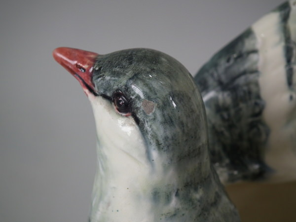 RESTORATION: Filled chips to both wings and tail feathers.