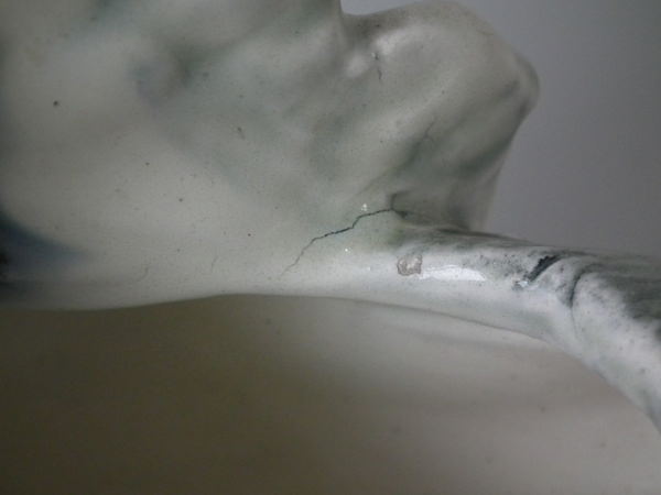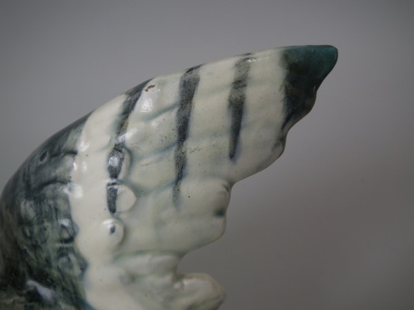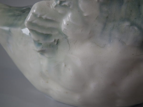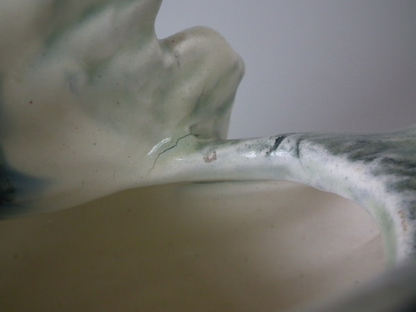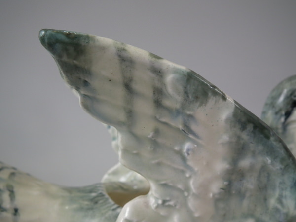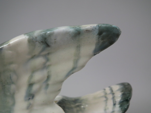 KILN EFFECTS: over glazed shrinkage lines to the base of the wings.