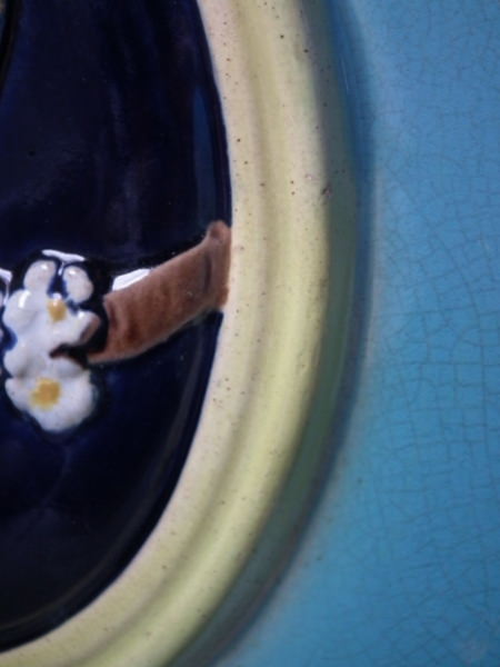 KILN EFFECTS: flecks of stray coloured glaze to interior;