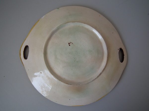 Victorian, circa 1870. 10.2ins high, 11ins wide, 1.4ins depth. Majolica platter which features shell and coral decoration.