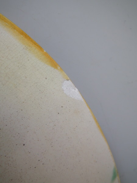 Cream ground version. Colouration: pink, green, ochre, are predominant.