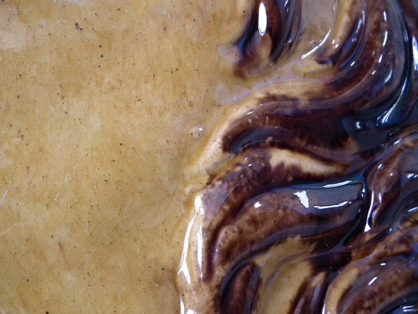 flecks of stray coloured glaze all over;