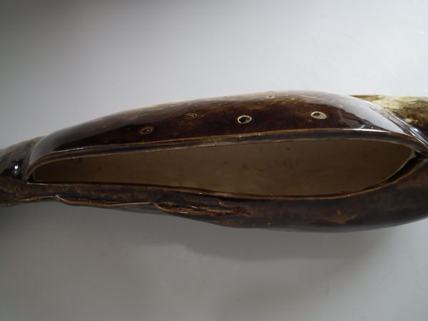 Circa 1890. 18.5ins high, 4.7ins wide, 4.7ins depth. Chantilly Majolica wall pocket which features a fish.