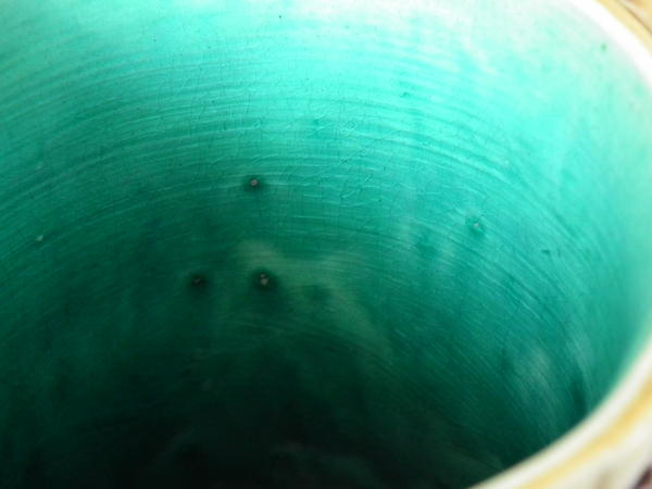 KILN EFFECTS: a few specks of kiln detritus caught in the glaze to the exterior;