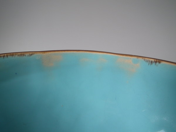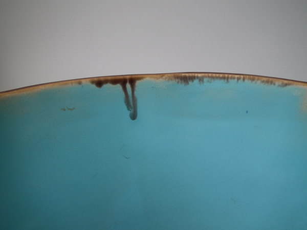 KILN EFFECTS: glaze run to the brown and ochre glazes;