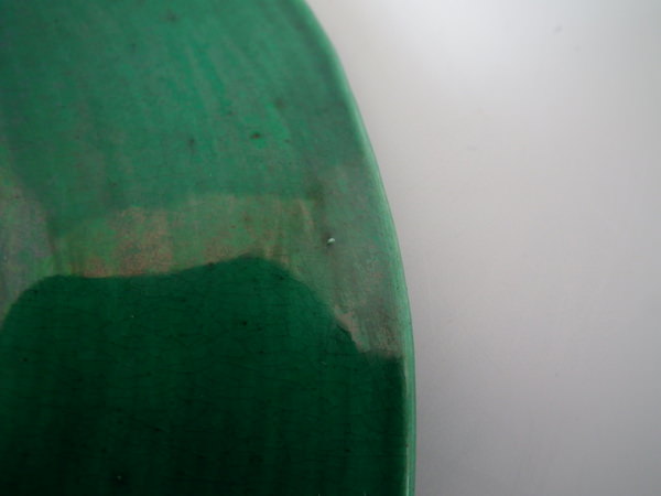 KILN EFFECTS: a few specks of kiln detritus caught in the glaze to the front and the reverse.