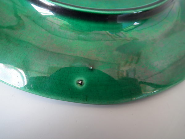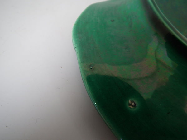 flecks of stray coloured glaze to the front;