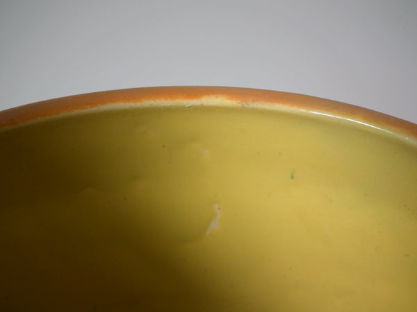 a few specks of kiln grit caught in the glaze to the ground;