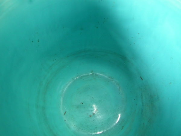 KILN EFFECTS: kiln detritus caught in the glaze to the exterior.