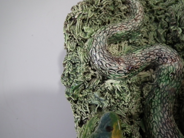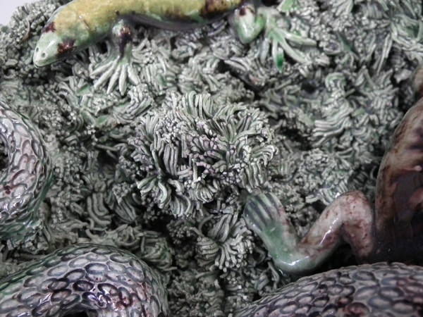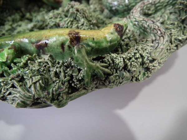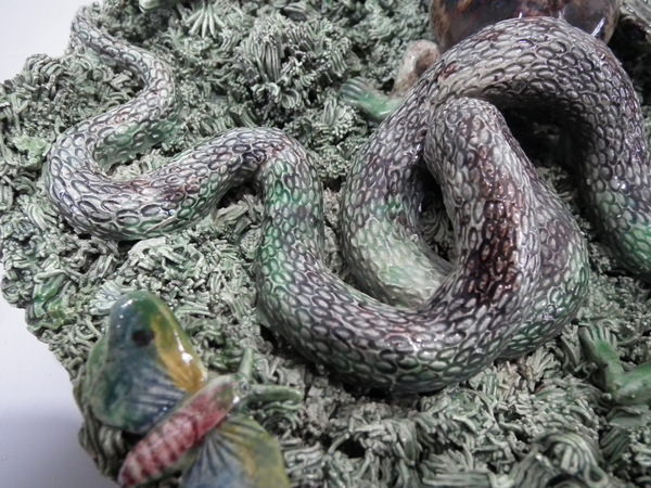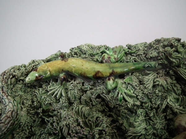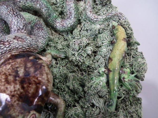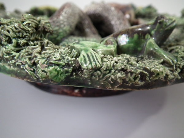 Cunha Majolica Palissy toad, frog, snake & lizard wall plate