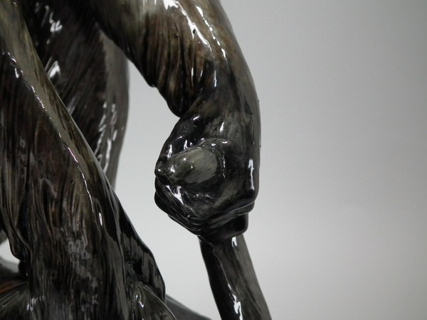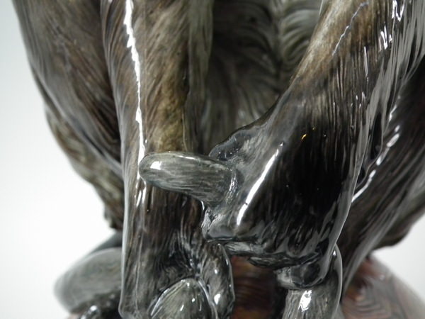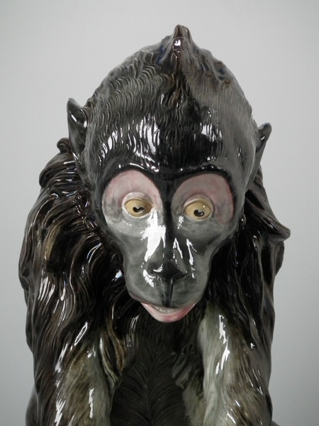 KILN EFFECTS: slight kiln grit caught in the glaze to the upper base and monkey's body;