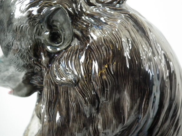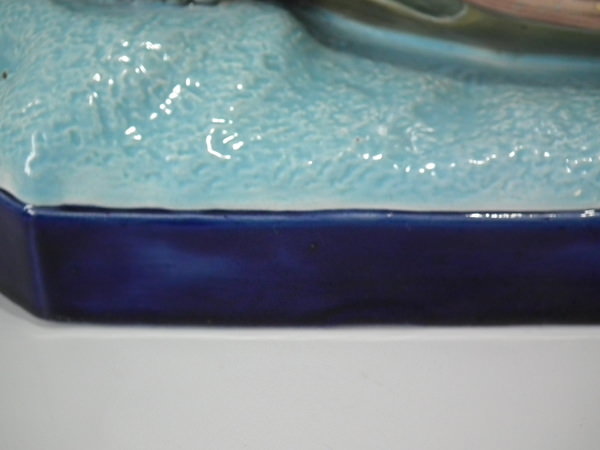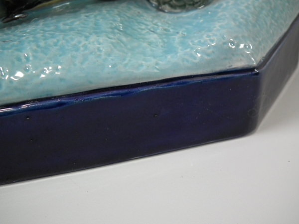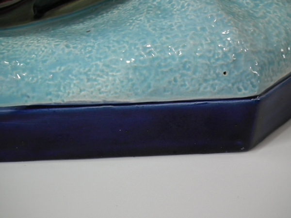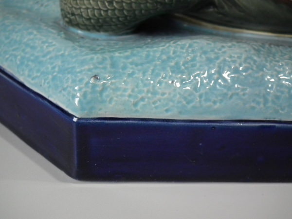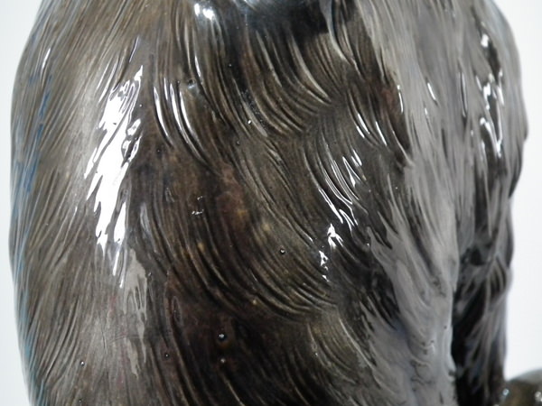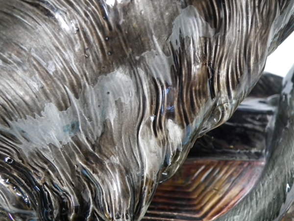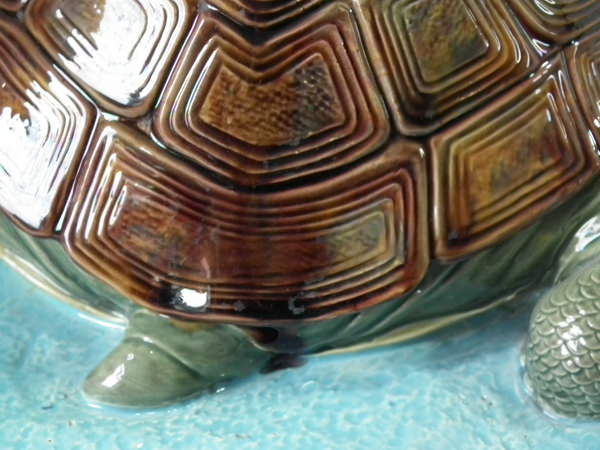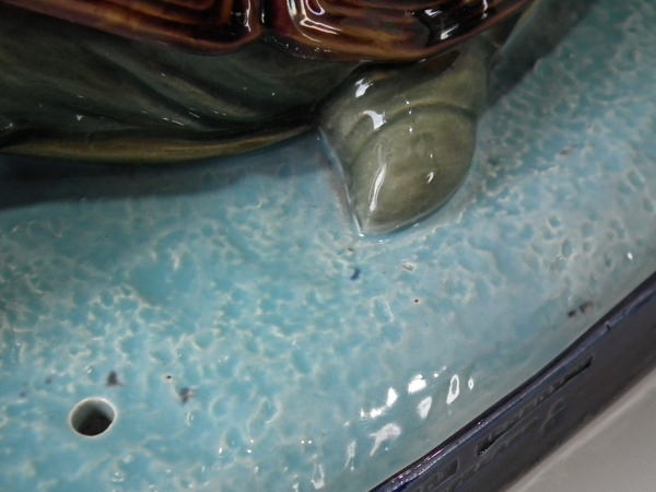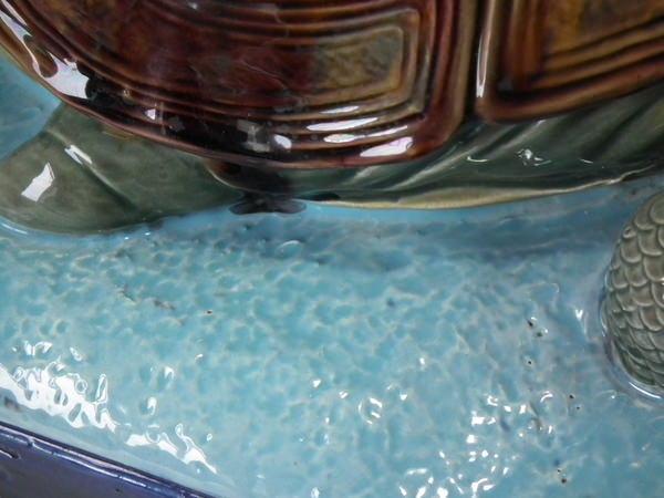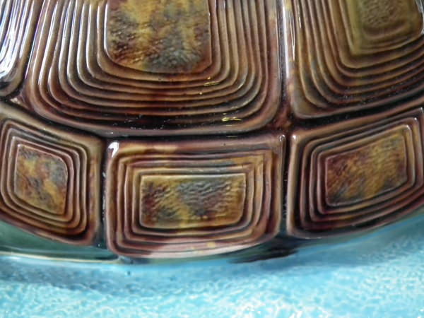 glaze run and uneven application to the brown glaze on the tortoise shell.