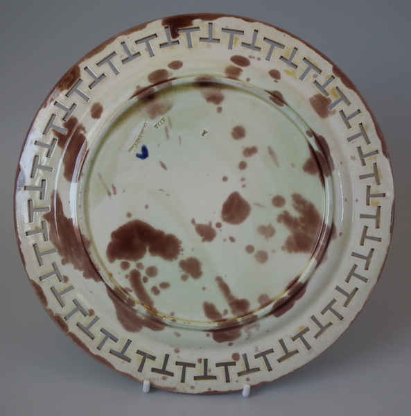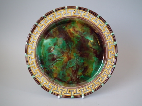 Wedgwood Majolica plate which features a Greek key reticulated border.