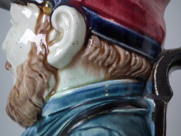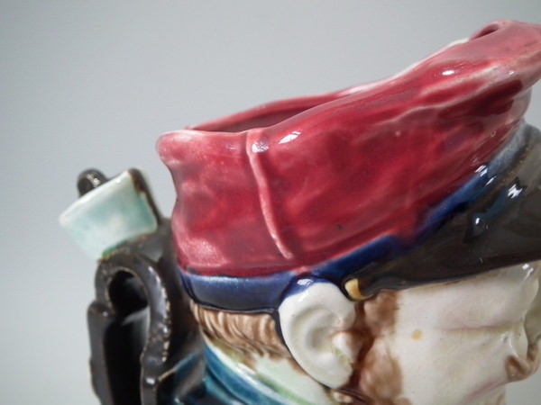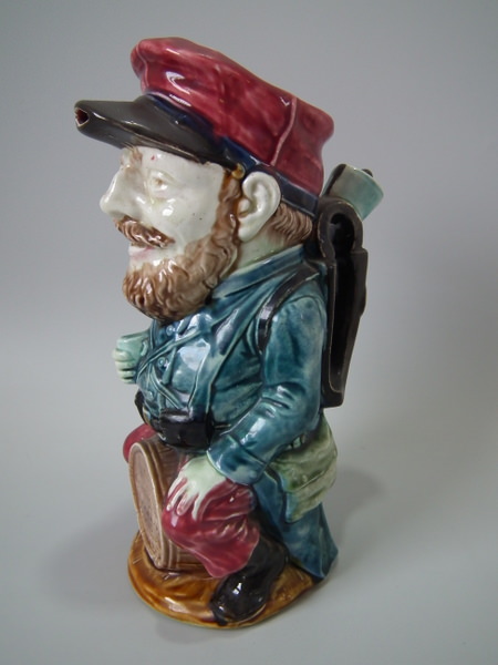 Onnaing Majolica 'Drunken Army Reservist' pitcher