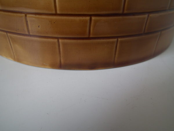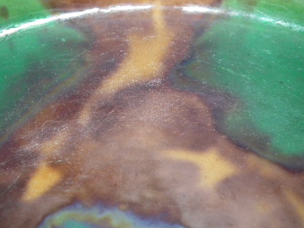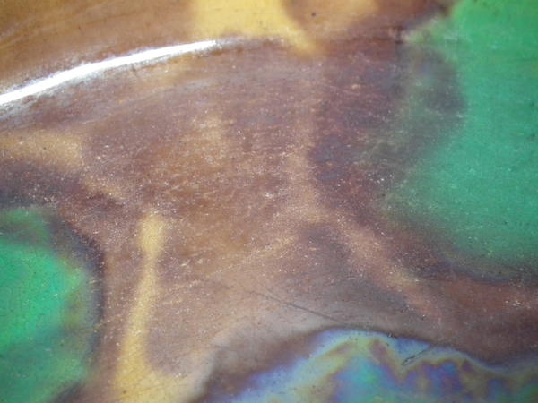 CONDITION: Cover: Good. KILN EFFECTS: glaze run to the brown and blue glazes;