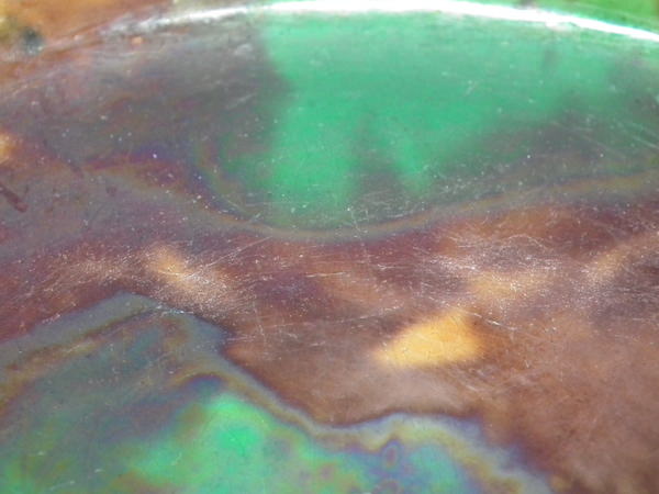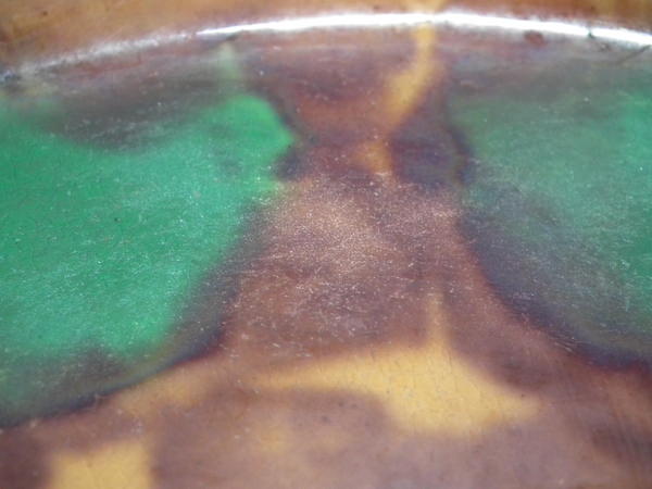 Wear to the interior, glaze is rubbed away in places.
