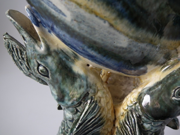 KILN EFFECTS: shrinkage cracks where the three fish tails,